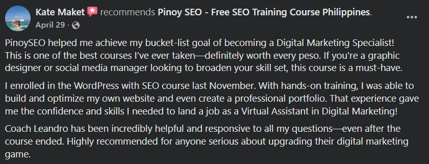 Instructor: Coach Rene Leandro Padilla, Founder of PinoySEO.ph, SOVA.ph, and MalachiSoft.com – with 14 years of experience as an SEO and WordPress specialist. Award-Winning Coach – Recipient of the Outstanding Digital Freelancer of 2024 Award, Given by the City of Iligan.